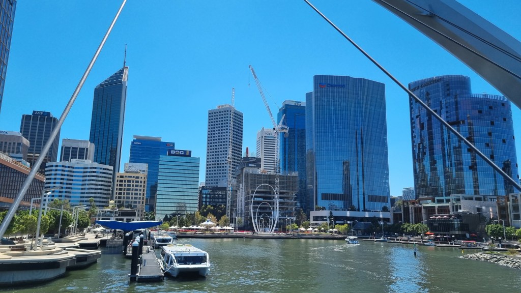 After exploring the city centre, we headed to the main waterfront area, Elizabeth Quay. It’s a popular spot for both locals and tourists, offering nice views of the Swan River and the city skyline. You can enjoy a walk along the promenade, dine at waterfront restaurants, or even go for a boat ride on the river. We considered a boat tour but found it quite pricey, so we opted to skip it. Instead, we walked along the promenade and sat down for a while to relax and take in the view.