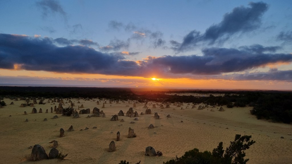 Then, we headed to our main and final destination: the Pinnacles Desert. The Pinnacles Desert is a unique natural attraction located in Nambung National Park, near Cervantes in Western Australia. It’s known for its eerie limestone formations called “pinnacles” that emerge from the yellow sand, creating a surreal landscape that has existed for thousands of years. Thousands of these formations are scattered throughout the desert. You can either explore the desert by driving along the Pinnacles Loop Drive or walking among the pinnacles on trails. It’s a must-visit destination in Western Australia! And if you’re lucky, you might even spot some native animals like kangaroos, emus, and various bird species.