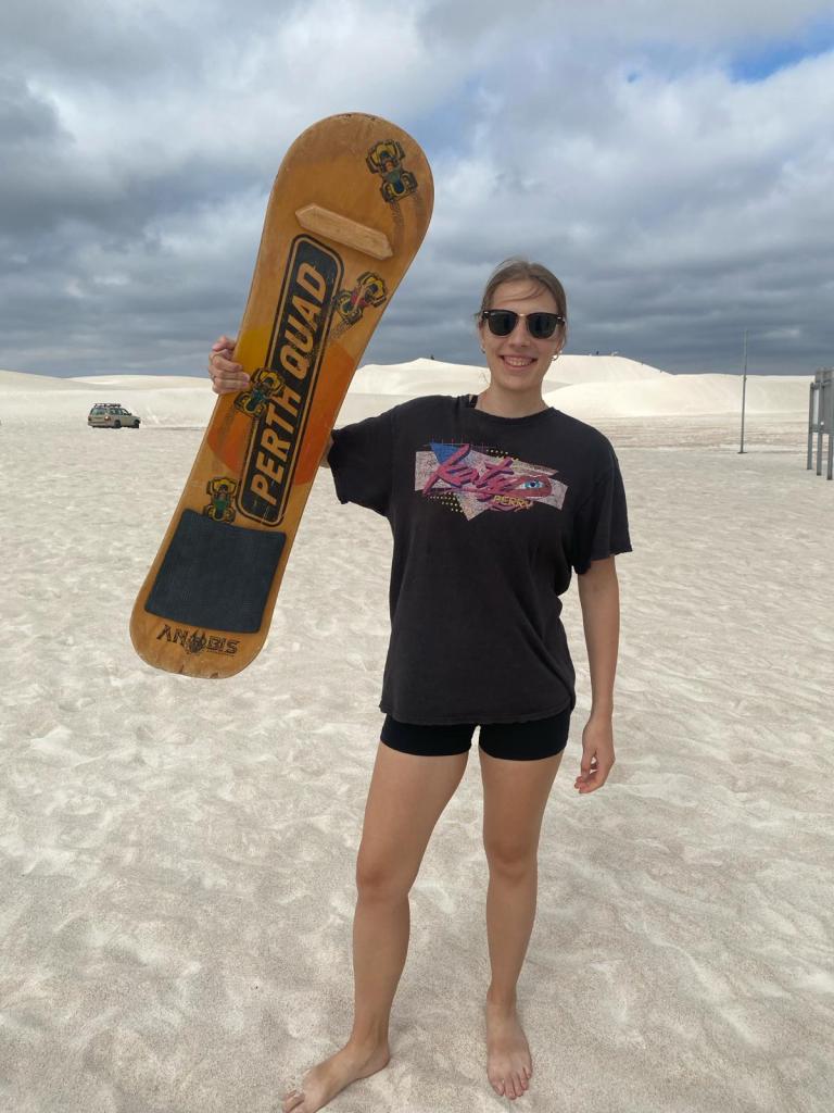 After being picked up by our tour guide, we headed through Western Australian’s nature to our first stop: Lancelin for sand duning! Lancelin, located about 90 minutes north of Perth, is a popular spot for sand duning adventures due to its vast sand dunes and stunning coastal views. Climbing up the sand dunes can be quite tiring. After a few rounds of climbing up and sliding down, most of us had enough, but it was definitely a fun and adventurous way to experience the natural beauty of Western Australia. I highly recommend giving it a try! Don’t worry, your guide will explain what you need to do and then he will give you a more or less gentle push to slide down.