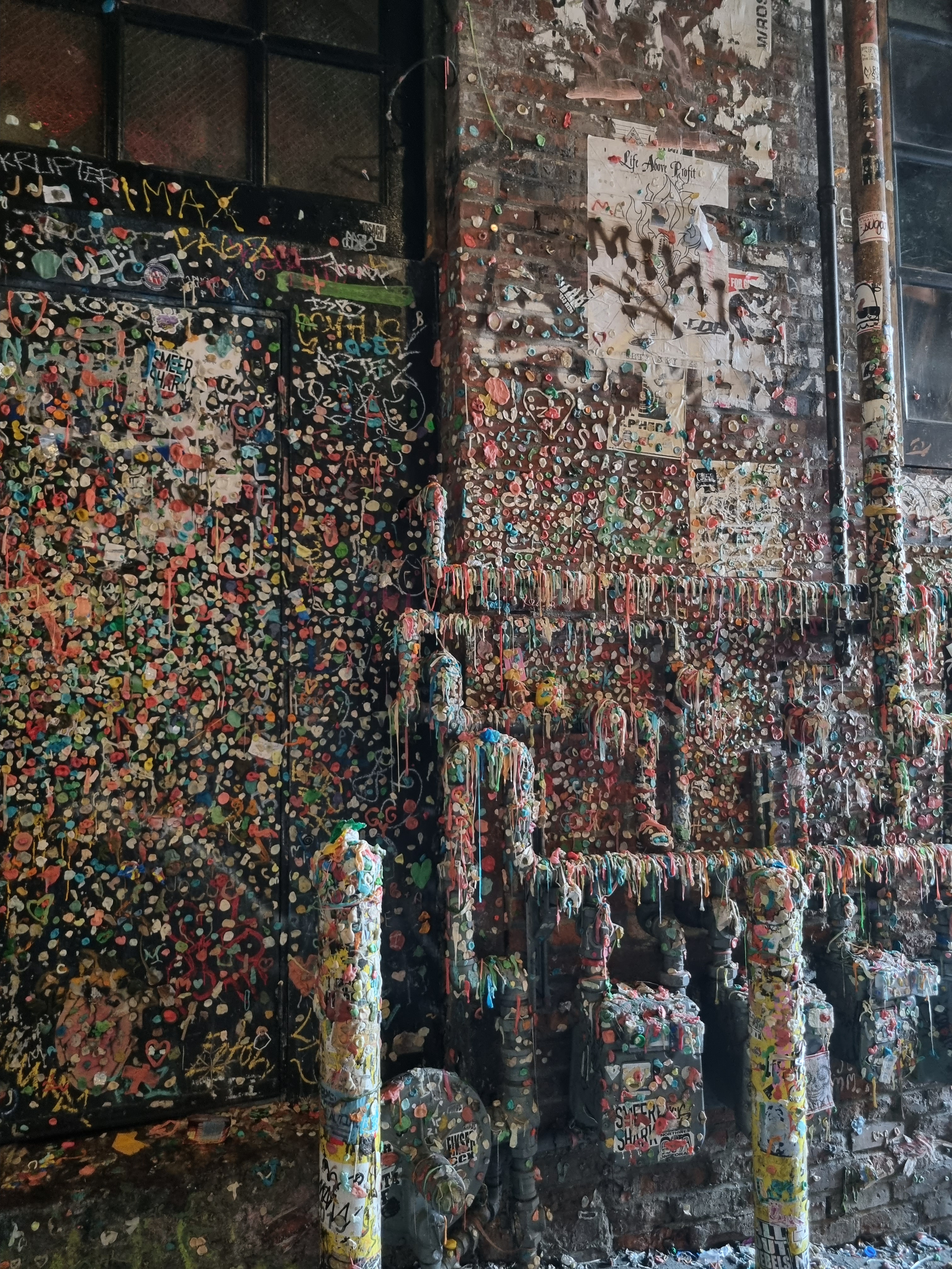 I began my morning by visiting the famous Gum Wall in Post Alley near Pike Place Market. The wall is adorned with chewed gum of different colors and shapes, forming a creative and unconventional sight. Many other visitors also add their gum to the wall, making it a continuously transforming art piece, which we also did. The Gum Wall is a popular destination for both tourists and locals.