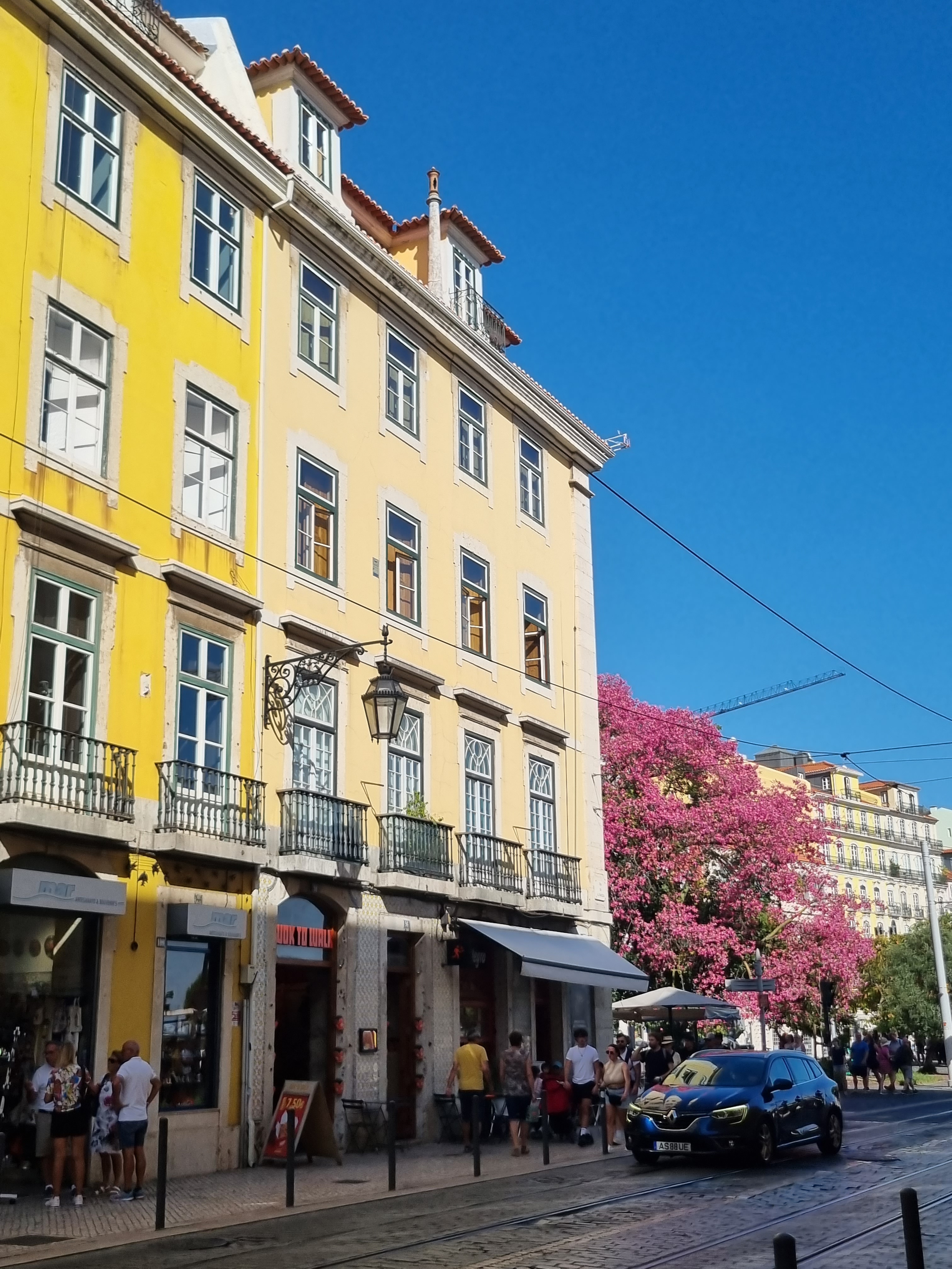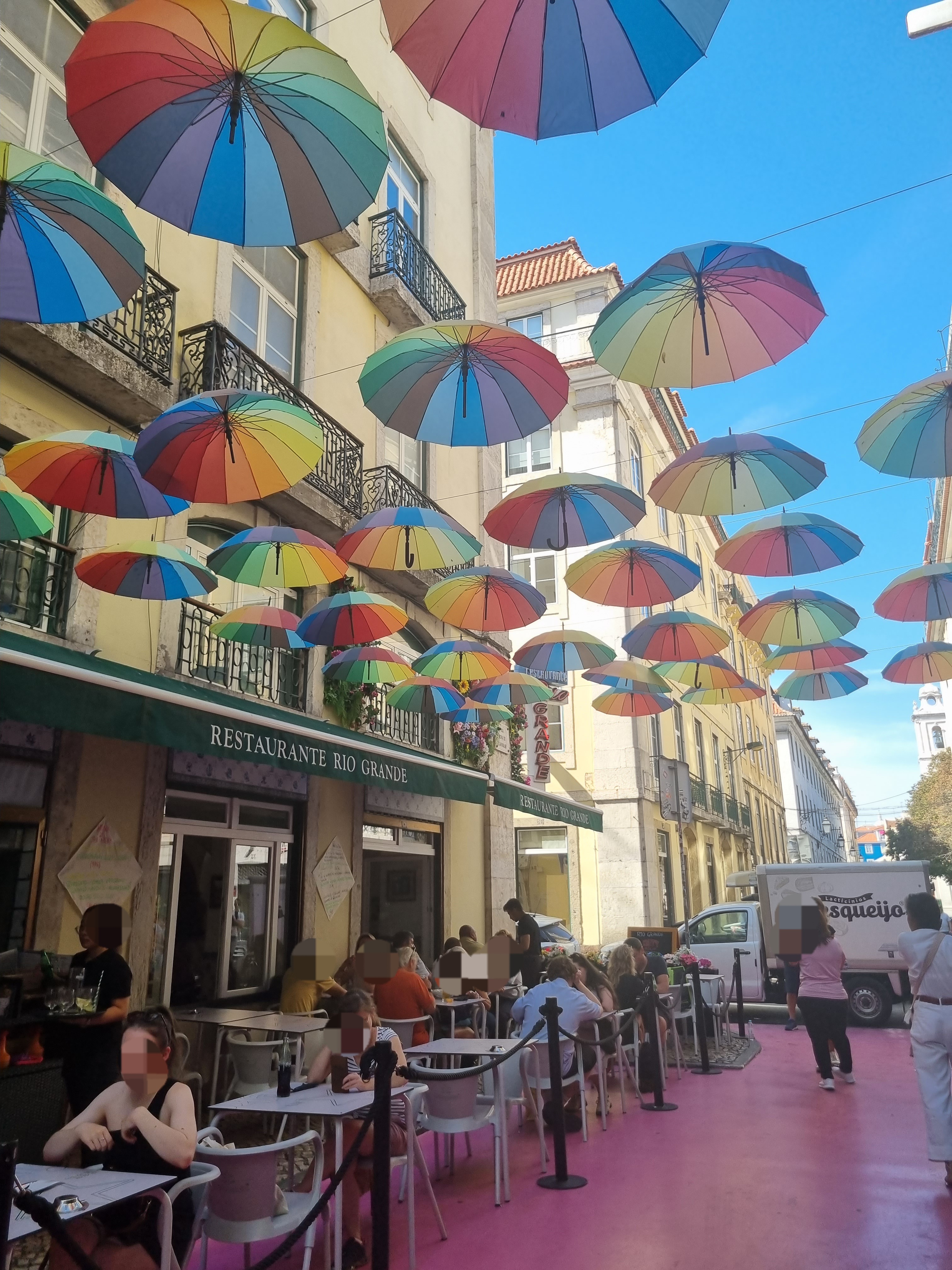 Afterwards, we explored the waterfront and walked through a few shops in the city center while passing through the Calle Rosa de Lisboa, also known as Rua Nova do Carvalho, a lively pink street in Lisbon’s Cais do Sodre neighborhood, famous for its vibrant nightlife scene. It’s packed with clubs, bars, restaurants, and terraces that host live concerts and fun events. During the day, it’s a perfect spot for taking photos under the colorful umbrella canopy.