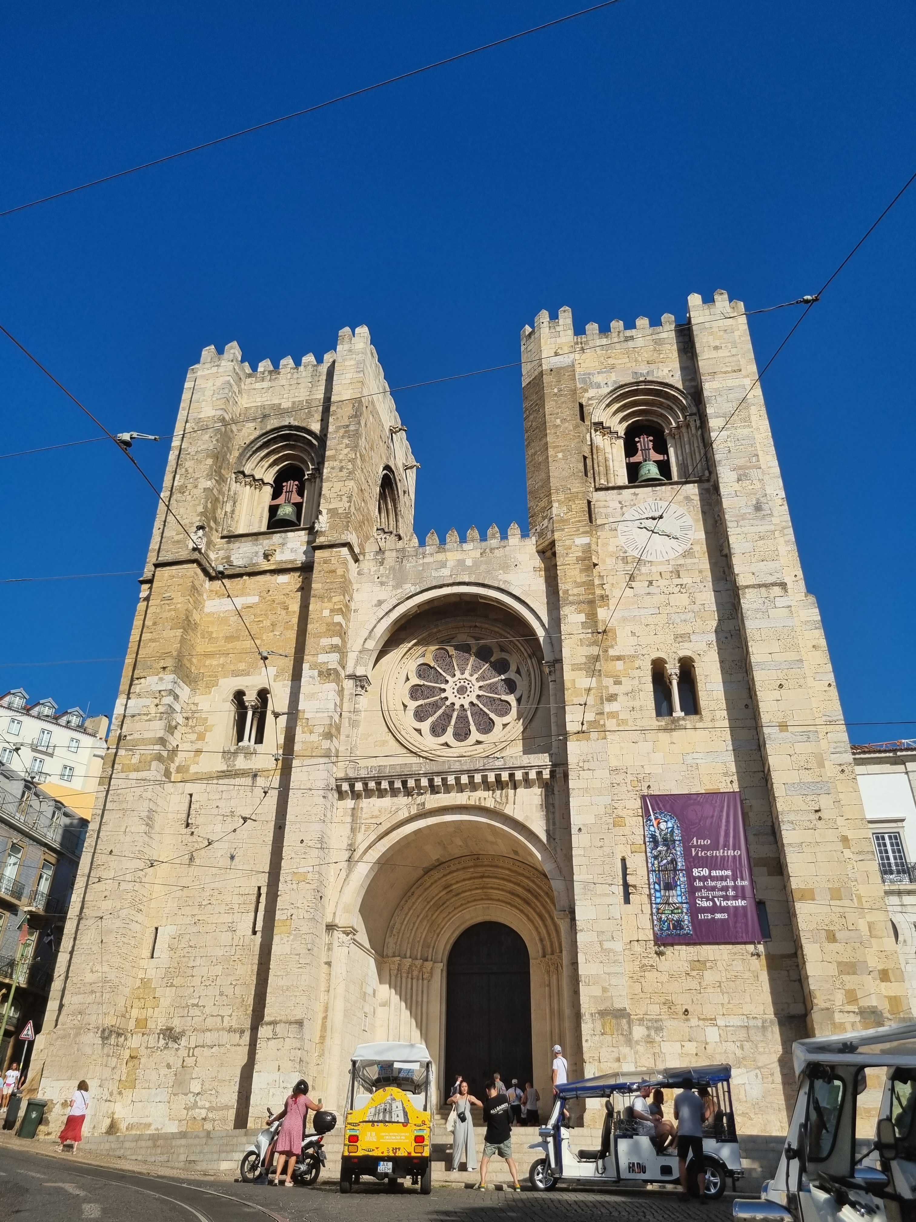 We began at the Rua Augusta Arch in Lisbon, a magnificent triumphal arch located in the city’s historic center next to the Tagus River. It symbolizes the city’s rebirth after the devastating earthquake of 1755. The arch is a prominent landmark that connects the bustling Rua Augusta street to the iconic Praça do Comércio square. After strolling through some charming streets, we arrived at the Lisbon Cathedral, also known as Sé de Lisboa. It’s one of the oldest churches in the city and a significant landmark. The cathedral, built in the 12th century, combines various architectural styles, including Romanesque, Gothic, and Baroque elements. You can also enter the cathedral to explore its beautiful interior and immerse yourself in its rich history.