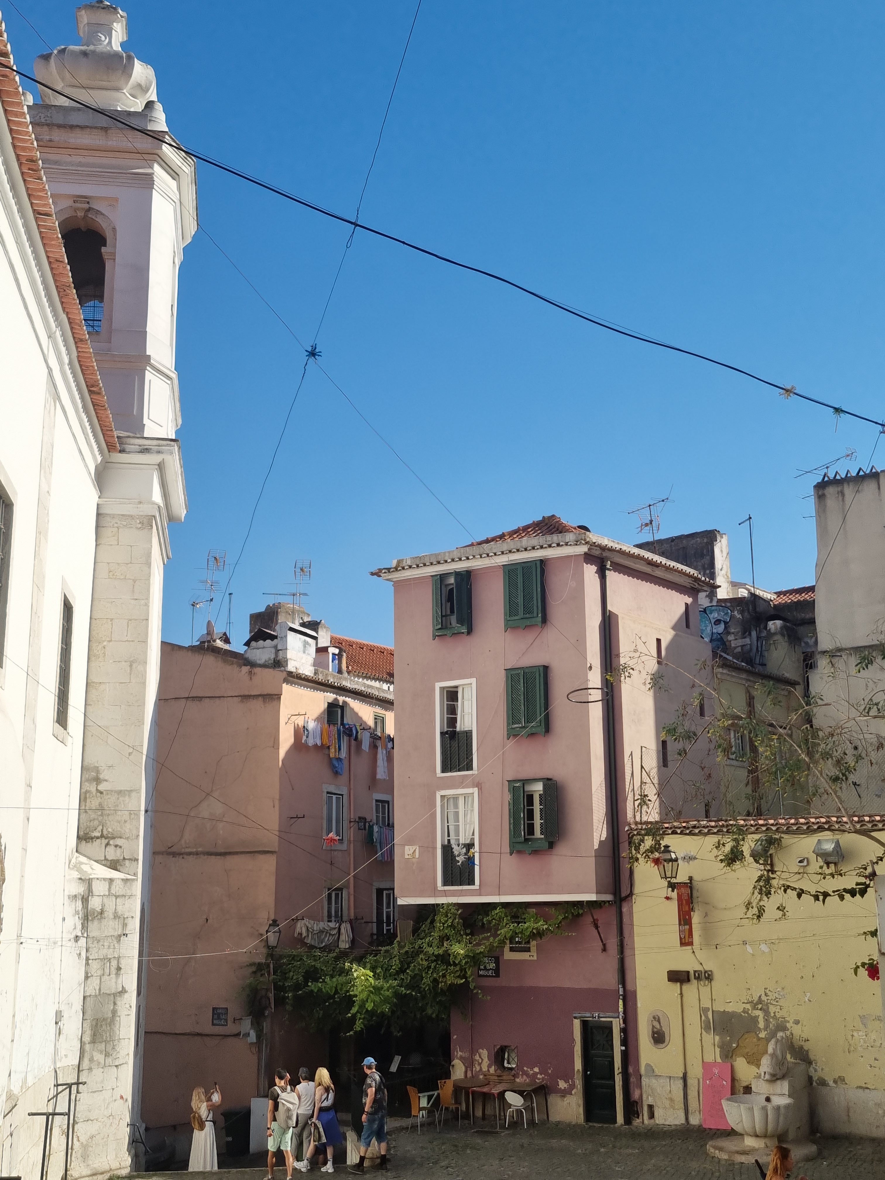 After our tour guide showed us around the charming streets and explained interesting things about the buildings and surroundings, we went to Miradouro de Santa Luzia, a beautiful viewpoint that offers stunning panoramic views of the city, the Tajo River, and the red rooftops of Alfama. It’s a perfect spot to relax, enjoy the scenery, and take in the charm of Lisbon. The viewpoint is designed with decorative tiles, lush greenery, and a pergola, creating a picturesque setting for visitors to appreciate the beauty of the city.