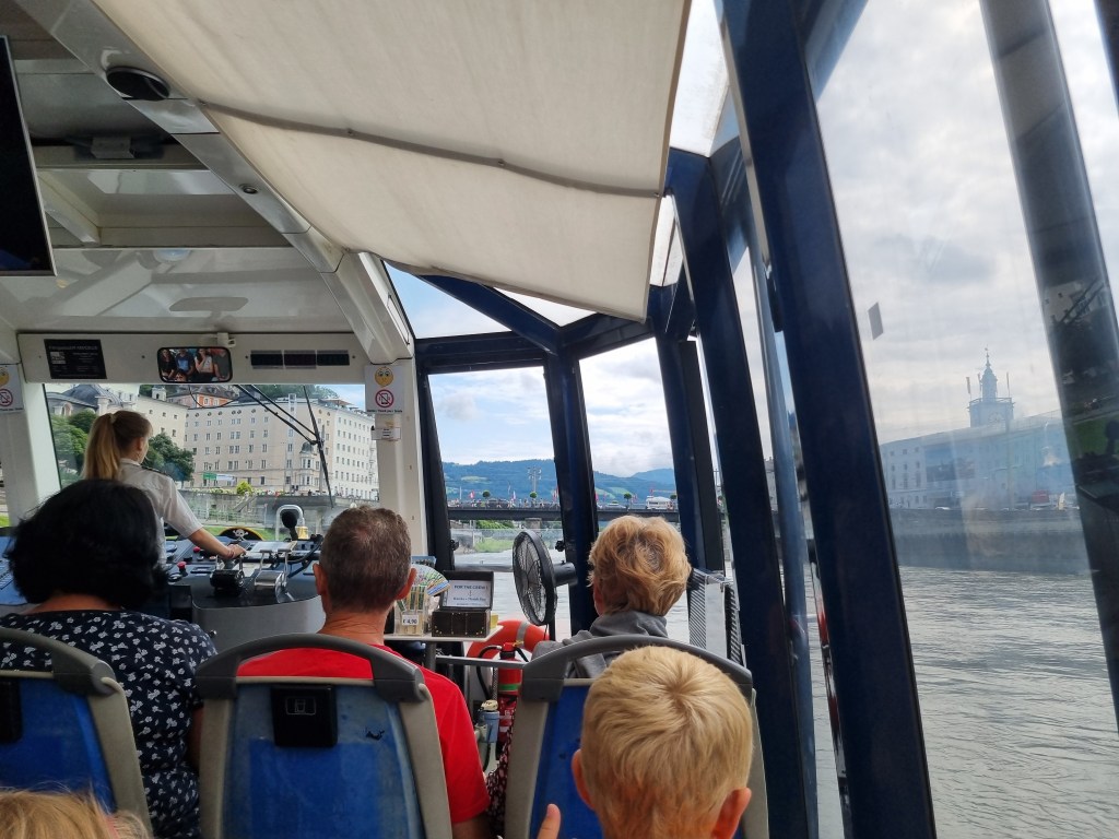 Afterwards, we took a boat tour on the Salzach River, which we had booked the day before. The boat tours provide a fantastic way to see the city from a different perspective. You can relax and admire the picturesque views of Salzburg’s famous landmarks as you cruise along the river. Despite the cloudy weather, we definitely enjoyed the journey!