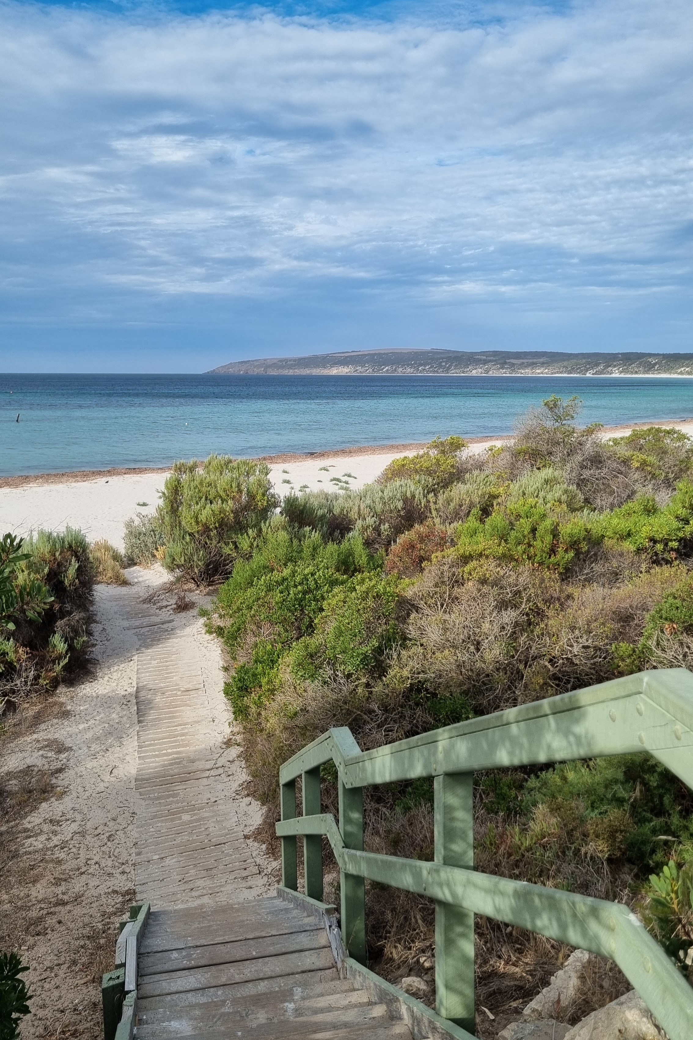 Next, we headed to Emu Bay Beach, just a quick 7-minute drive away. Here, we strolled along the dazzling white sands, feeling the soft grains beneath our feet while watching a variety of birds glide gracefully over the bay and the ocean.