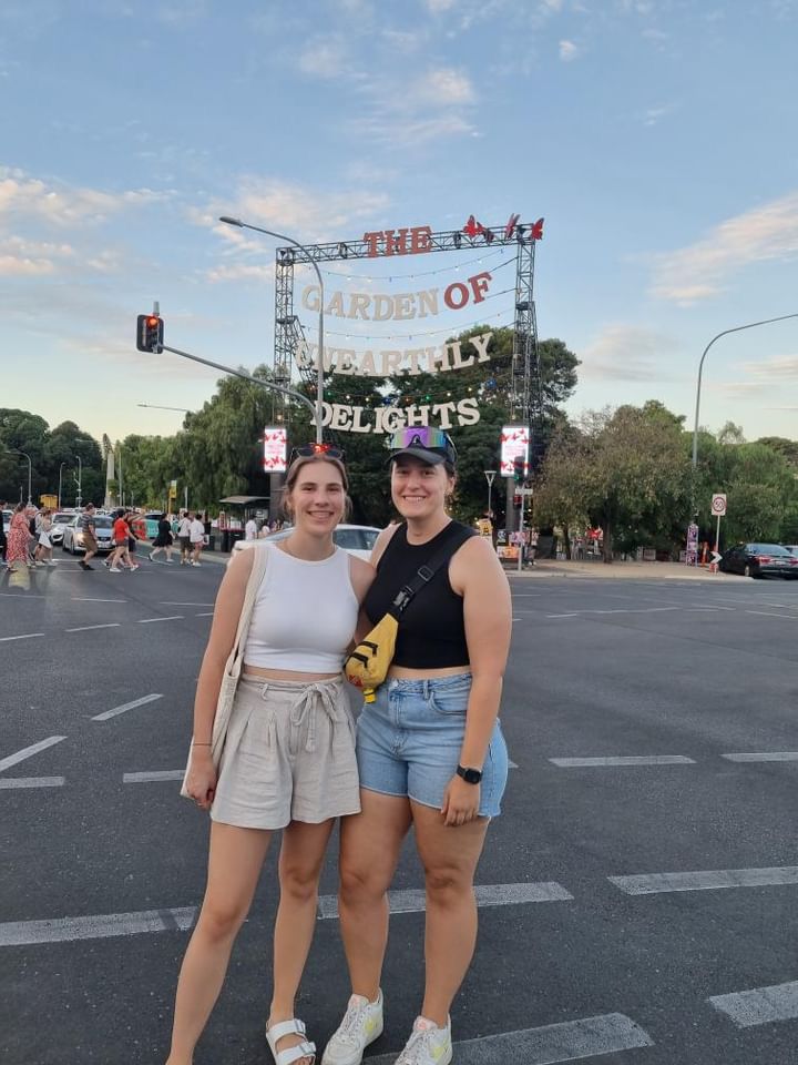 Our walk through the city brought us to the lively Garden of Unearthly Delights, a famous festival spot in Adelaide that comes alive every year during the Adelaide Fringe Festival, which usually runs from mid-February to mid-March. We were lucky to be there at the exact time. The place was full of energy, with art displays, performances, food stalls, and fun carnival rides.