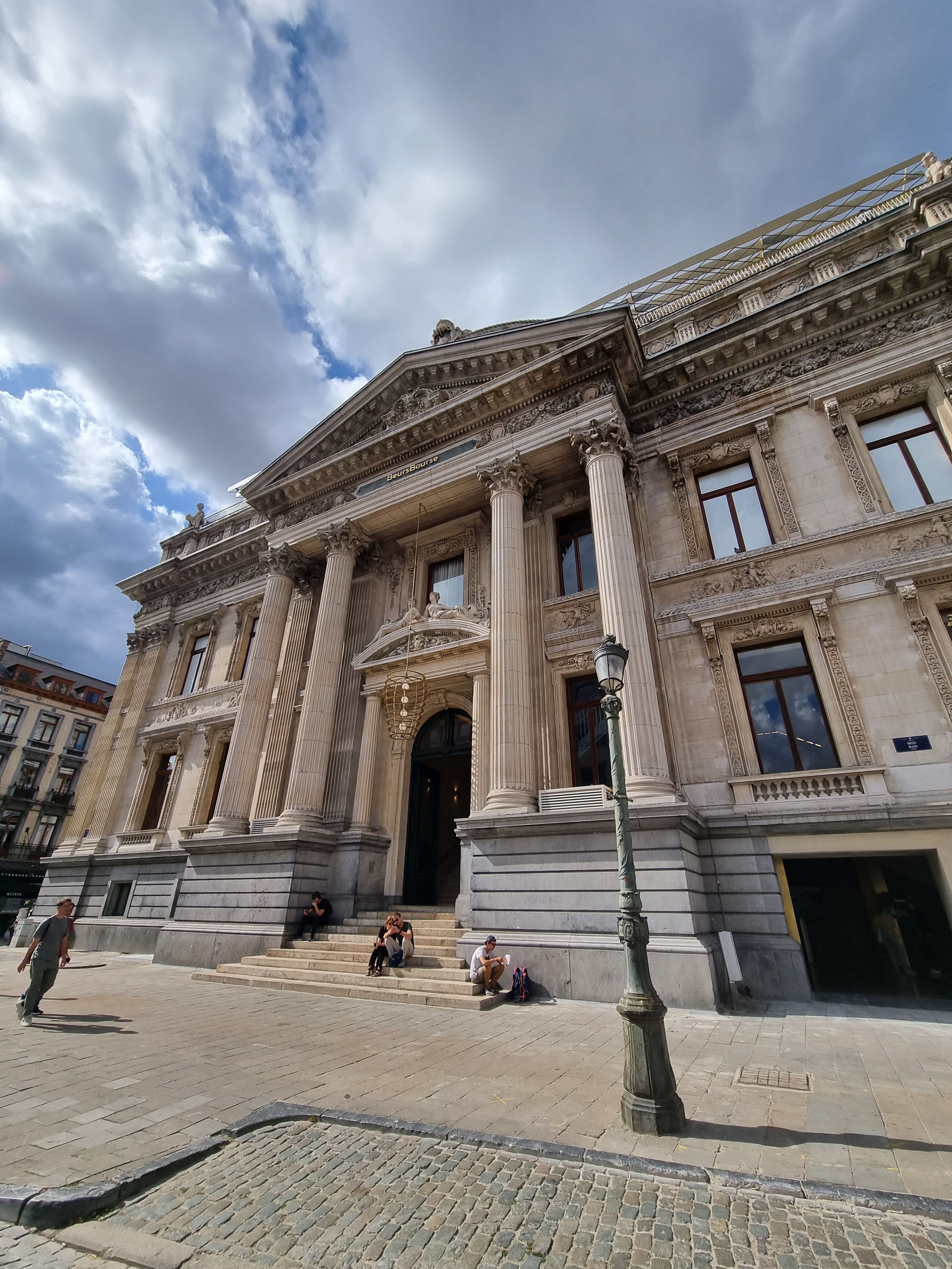 Refreshed, we strolled past the city’s famous smallest house, a charming curiosity tucked neatly between larger buildings, before arriving at the majestic Brussels Stock Exchange. We stepped inside, marvelling at the grand architecture and the sense of history that filled the air.