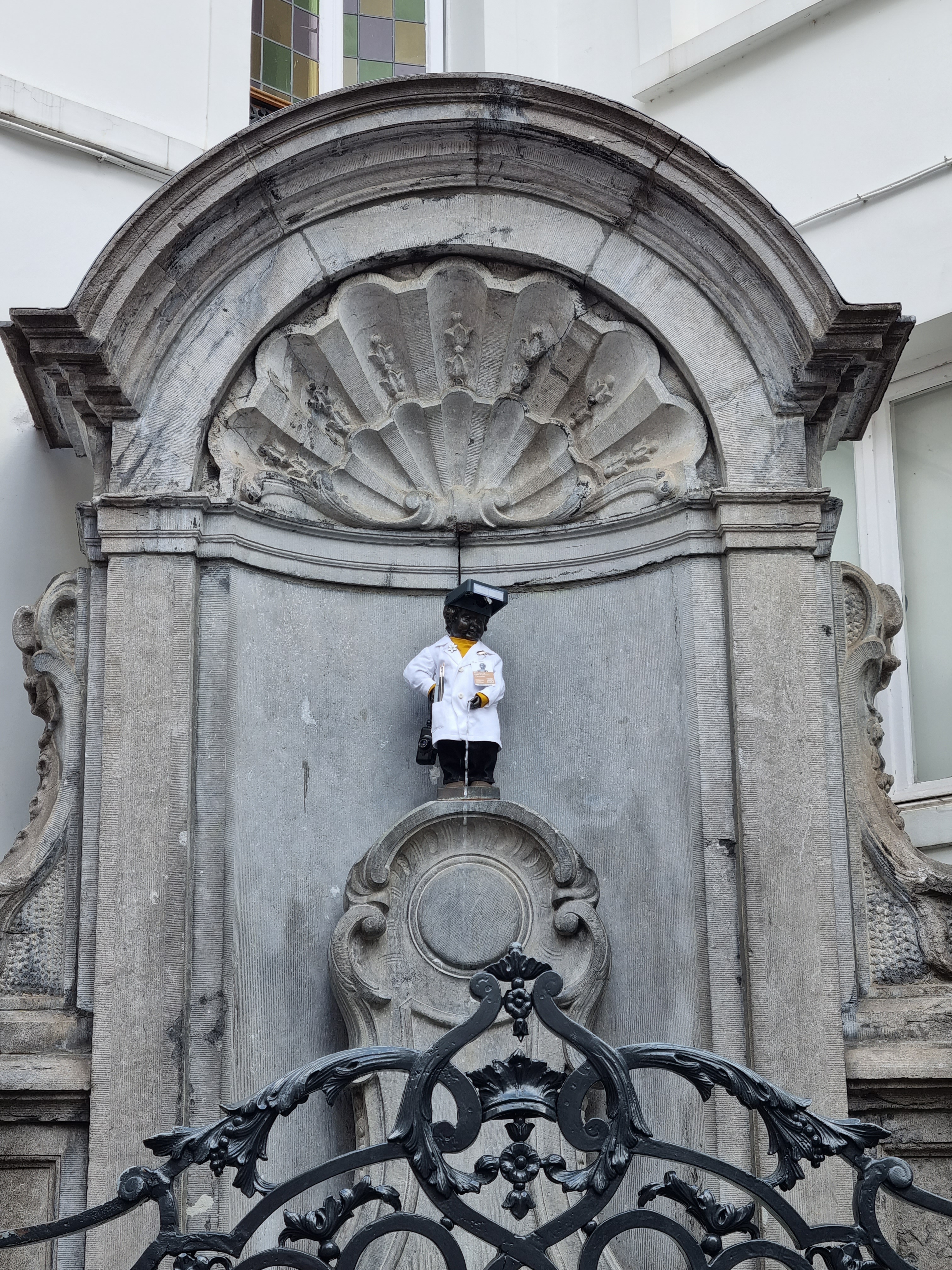 Afterward, we made our way back to the heart of the city. By then, all the morning adventures had left us feeling quite hungry, so we found a cozy little restaurant and enjoyed a well-deserved lunch. Once refreshed, we wandered through the charming streets of Brussels, where every corner seemed to hold a new surprise. That’s when we stumbled upon the famous Manneken Pis, the iconic little statue of a boy peeing, which has become a quirky symbol of the city. The statue was dressed as a doctor that day, one of the many playful costumes it wears throughout the year. It’s always fun to see how the locals keep this tradition alive, adding a touch of humor to their cultural pride.