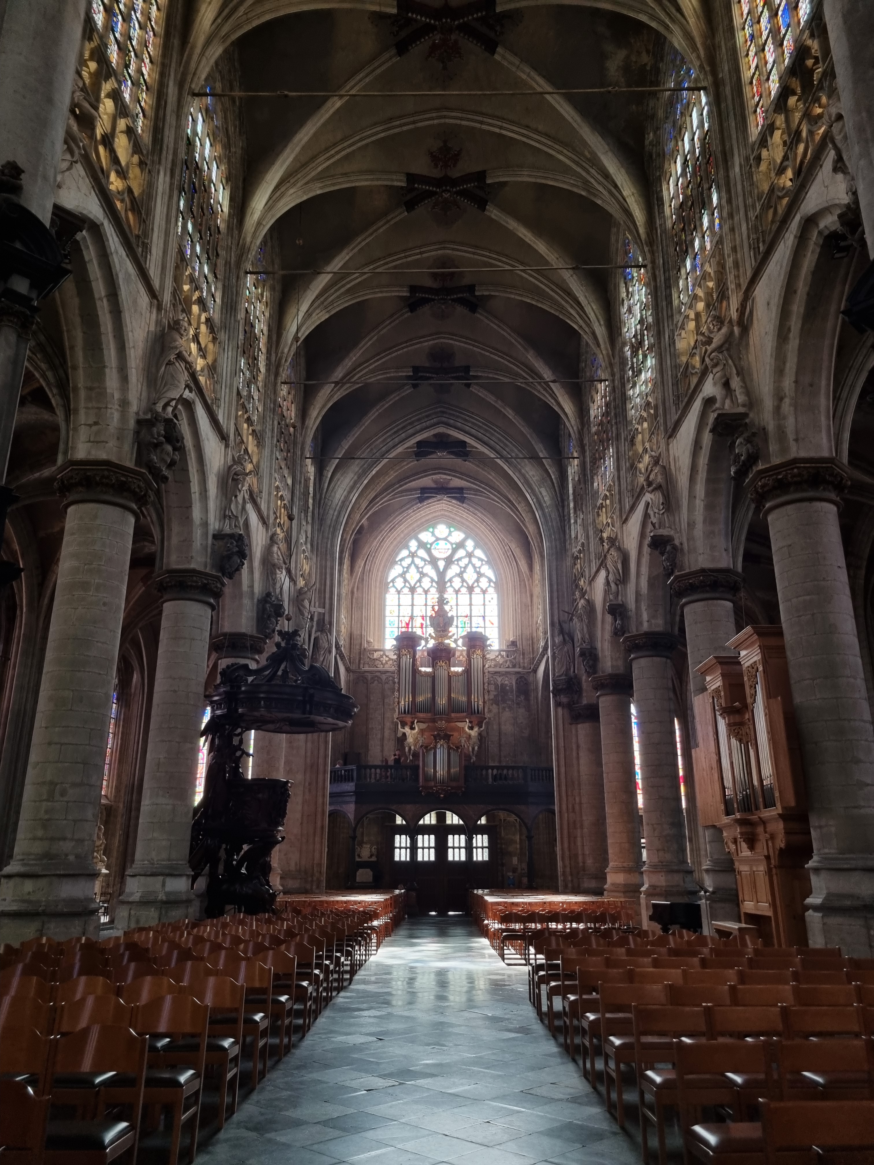 Continuing our walk, we came across the breathtaking Eglise Notre-Dame des Victoires au Sablon. This stunning Gothic-style church, with its intricate stained glass windows and towering spires, was as captivating inside as it was from the outside. Stepping into the quiet, cool interior felt like stepping back in time, surrounded by centuries of history and artistry.