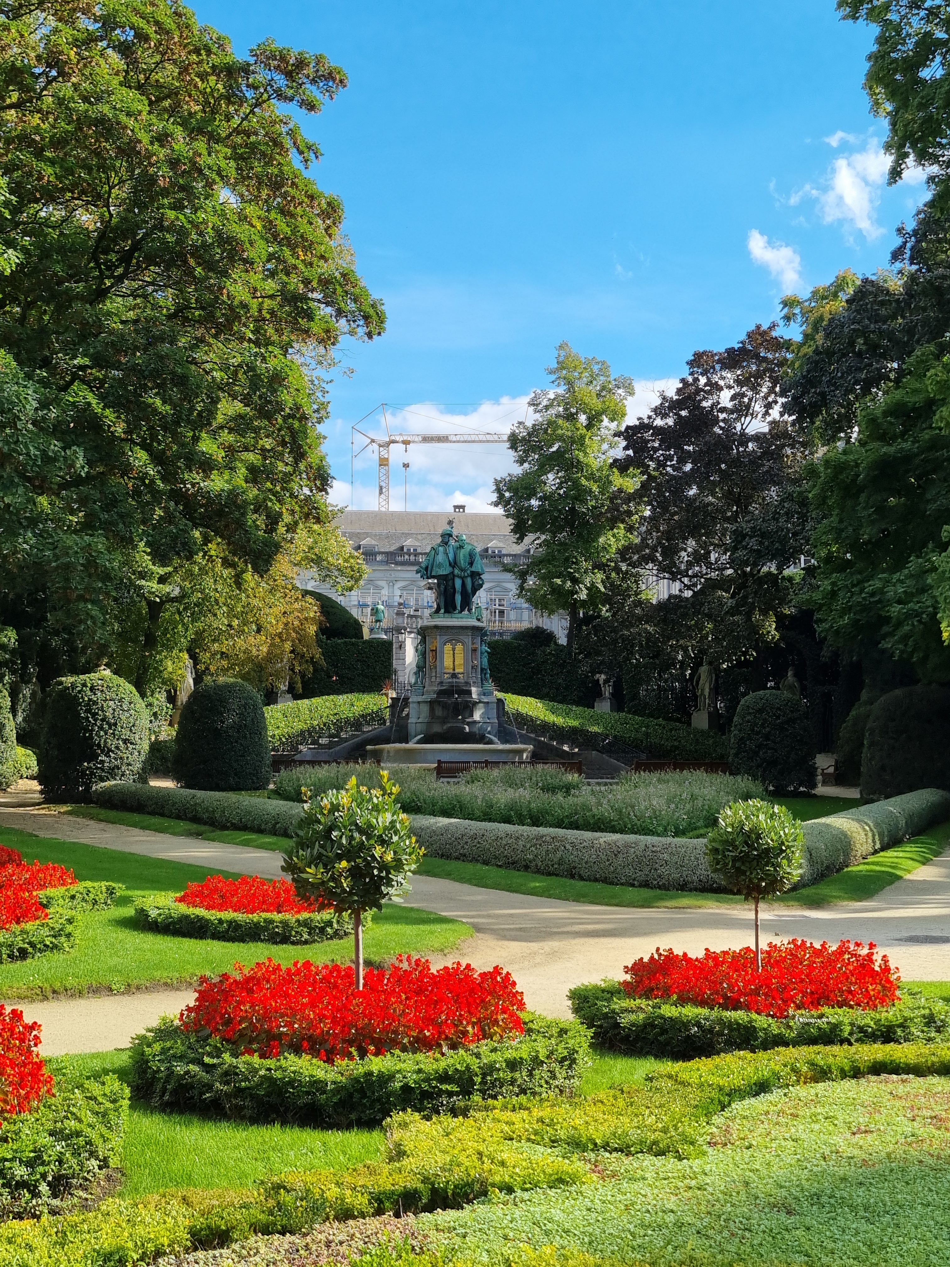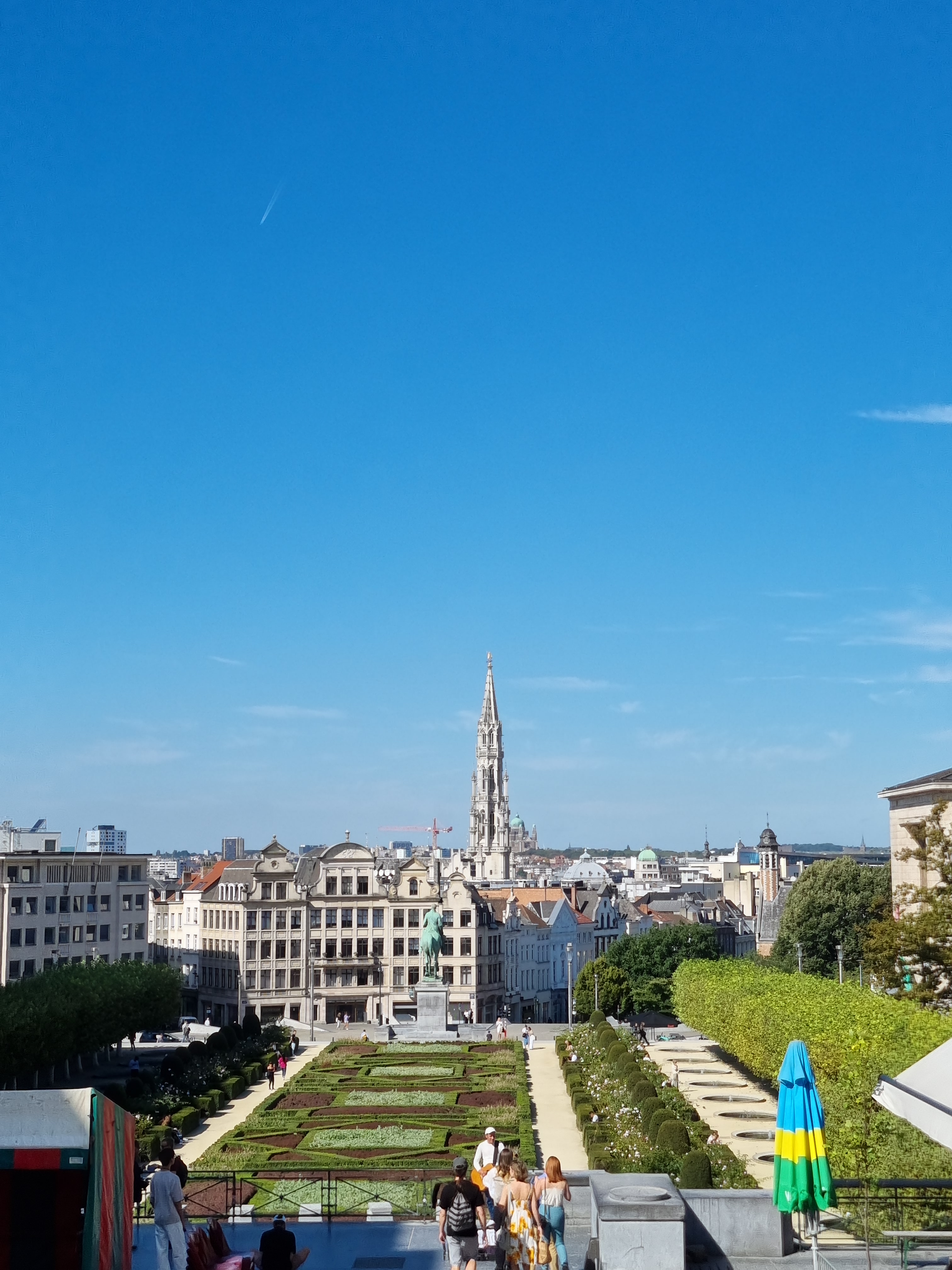 The Jardin du Mont des Arts itself was a peaceful escape from the bustling city. Nestled between the Royal Library and the Mont des Arts square, this beautifully landscaped garden offers a perfect blend of art, history, and nature. The well-maintained flower beds, fountains, and statues create a serene atmosphere, and the view of Brussels below was really nice.