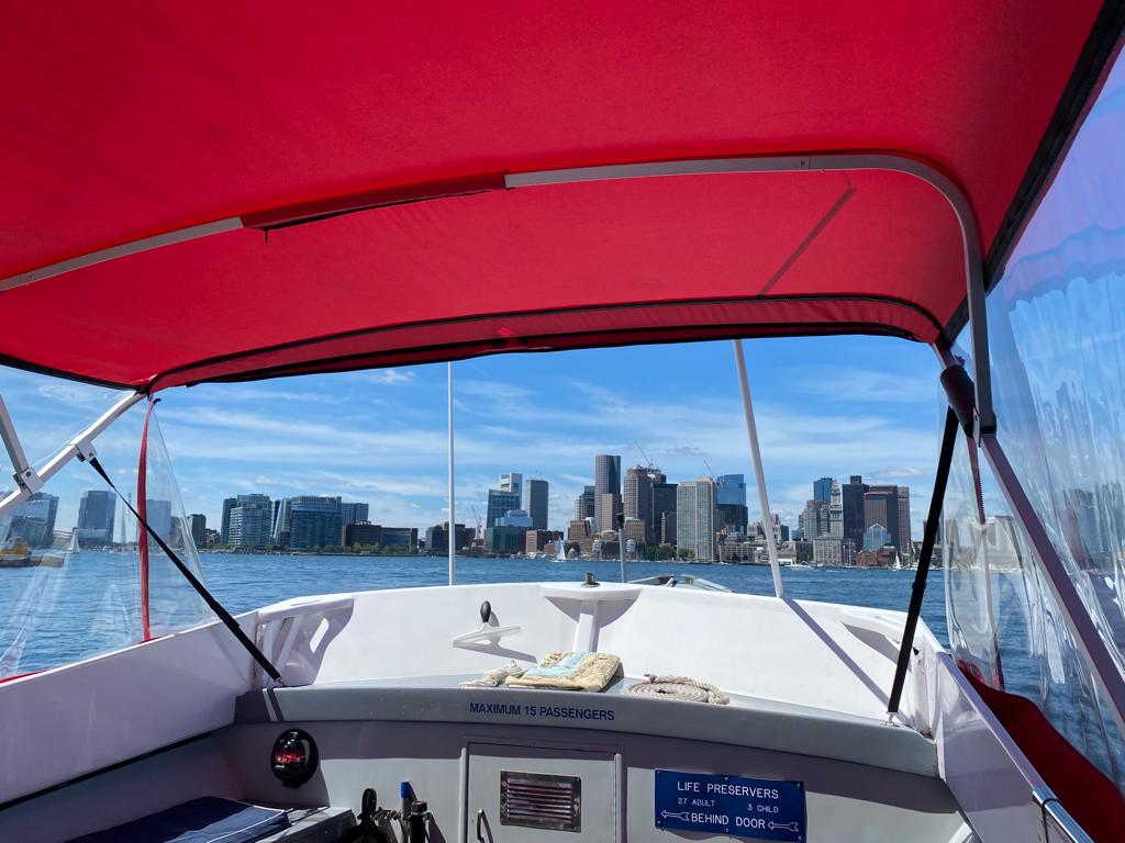 After exploring Harvard University, we made our way back to the Christopher Columbus Waterfront Park. This beautiful green space, right by the harbor, had already impressed us the day before with its relaxing atmosphere and stunning views of the Boston skyline. From there, we headed to Long Wharf, one of Boston’s oldest piers, where we caught a ferry across the harbor. The ride itself was a highlight— feeling the salty breeze and watching the city skyline from the water was an experience in itself.